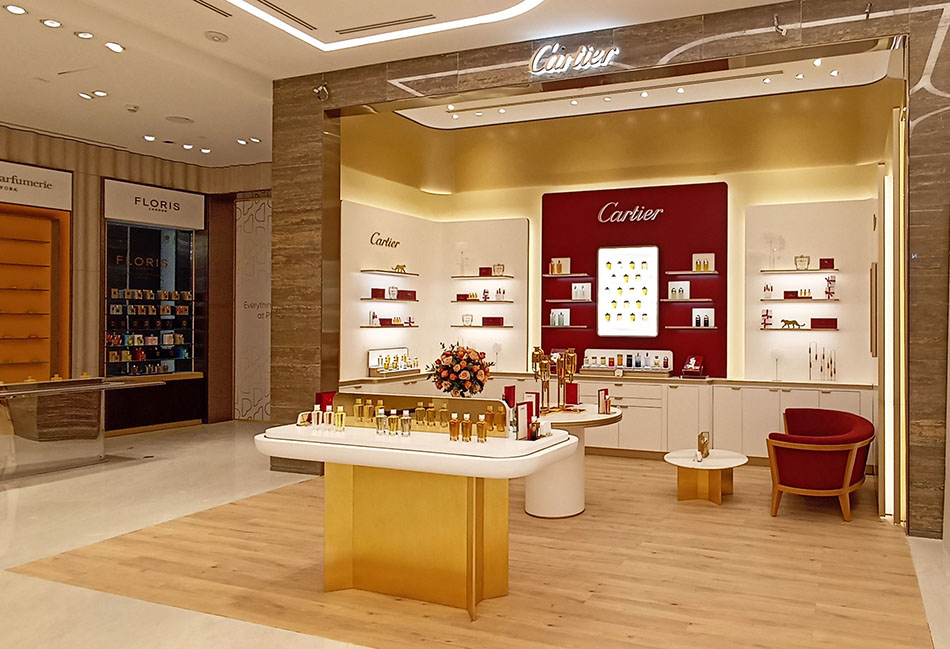 wall, ceiling, lightbox, bar counter, reception desk, columns, and other interior designs.